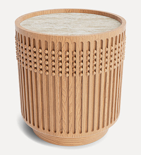 Small in size, major in style. The Menton Side Table is the quiet scene-stealer your space didn’t know it needed. With its fluted oak base, carved detailing, and creamy travertine top, it’s the perfect blend of earthy texture and refined elegance.